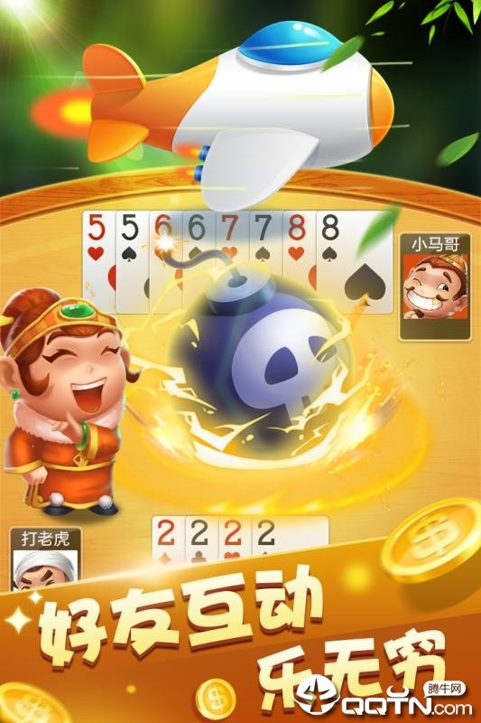 场景化的游戏界面,感受真实的斗地主;丰富趣味的飞机、炸弹动画,为斗地主增添更多欢乐元素