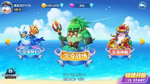 2.在点击捕鱼的传统玩法上,完美融入水族箱、抓抓乐、俱乐部等多种自创趣味玩法!